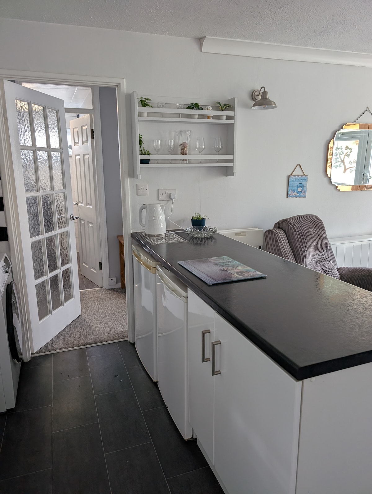 Nuestro apartamento bijou recién creado es ideal para dos personas, aunque hay un sofá cama si deseas que dos niños se alojen también. Estamos a cinco minutos a pie del centro de la ciudad de Dawlish, la playa más cercana y la estación de tren. La cocina está totalmente equipada con todo lo necesario para prepararte comidas. La cama es doble estándar con almacenamiento. El alojamiento no es apto para personas con movilidad reducida. Hay 12 escalones hasta la unidad. Se admiten perros que se porten bien. Aparcamiento en la calle.
