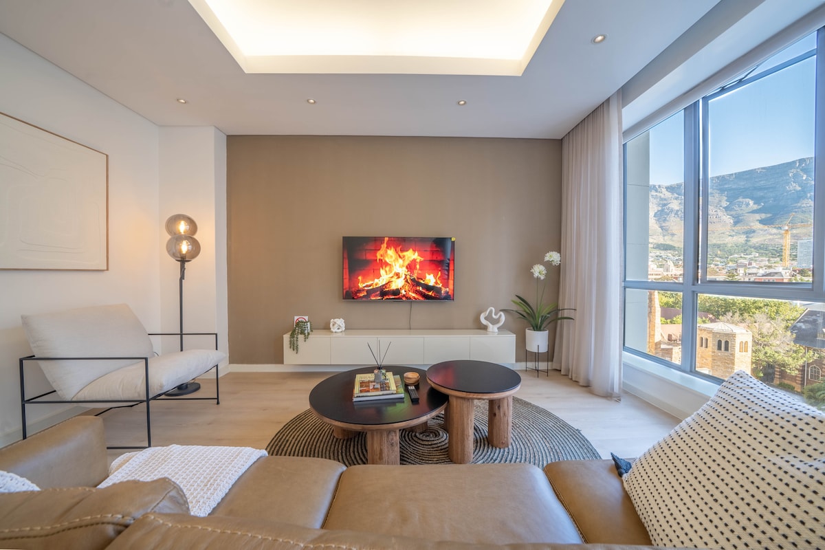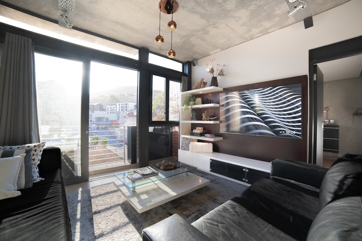 Despiértate con vistas de 180° a la Montaña de la Mesa desde este elegante loft de doble volumen en el corazón de De Waterkant. Disfruta de un balcón privado, piscina, estacionamiento seguro, conexión Wi-Fi rápida y un espacio de trabajo adecuado, ideal para parejas, viajeros solitarios y estancias más largas. Camina hasta Bree Street, cafeterías, bares y el V&A Waterfront. Con una cocina totalmente equipada y ventanas de doble volumen que le dan al loft su sensación de luz y aire, el espacio está diseñado para la comodidad: ¡un acogedor hogar lejos del hogar en una de las zonas más vibrantes de Ciudad del Cabo!