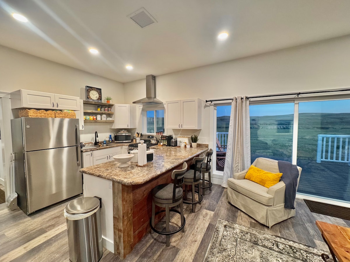 Disfruta de impresionantes amaneceres y puestas de sol en Hangin' Heart Ranch, ubicado en la tranquila campiña al oeste de Great Falls, a 10 a 15 minutos de la ciudad. Este acogedor alojamiento único tiene capacidad para 2 adultos (*posiblemente hasta 4) y cuenta con Internet de alta velocidad, un pequeño espacio de trabajo, TV de alta definición, cocina bien equipada y lavadora y secadora de carga frontal. Lo mejor de todo es sumergirte bajo un cielo estrellado en el jacuzzi justo al lado de tu puerta. * ¿Necesitas espacio para uno o dos huéspedes adicionales? Avísanos, es posible que podamos ofrecer un sofá cama extraíble.