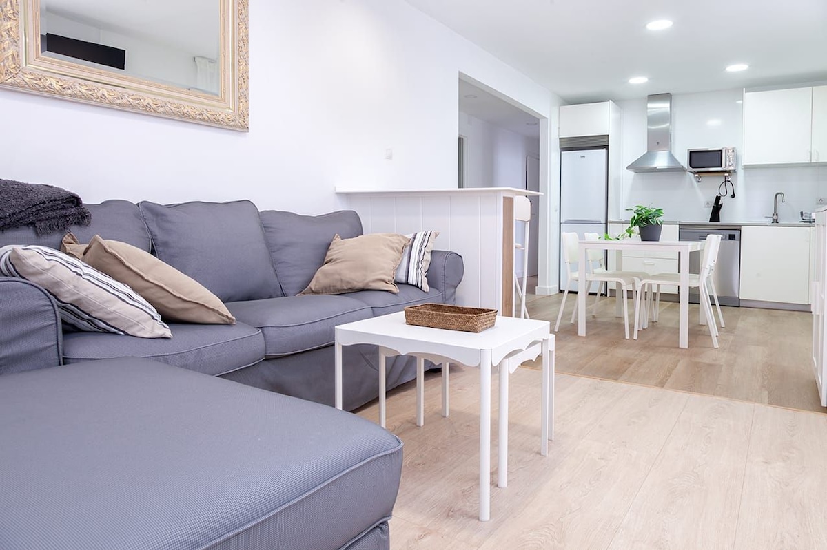 De estilo urbano y acogedor, este nuevo apartamento de un dormitorio con cama kingsize y sofá cama (144x180cm)se encuentra en el corazón del barrio de Gros, a 1 minuto a pie del centro de la ciudad Impecablemente recién reformado cuenta con aire acondicionado, televisión 55", Wifi, Nesspreso. Completamente equipado para niños y bebés. Perfectamente ubicado a 2 minutos de la estación de autobuses y de trenes, así como al lado de una parada directa de autobús para el aeropuerto de San Sebastián.