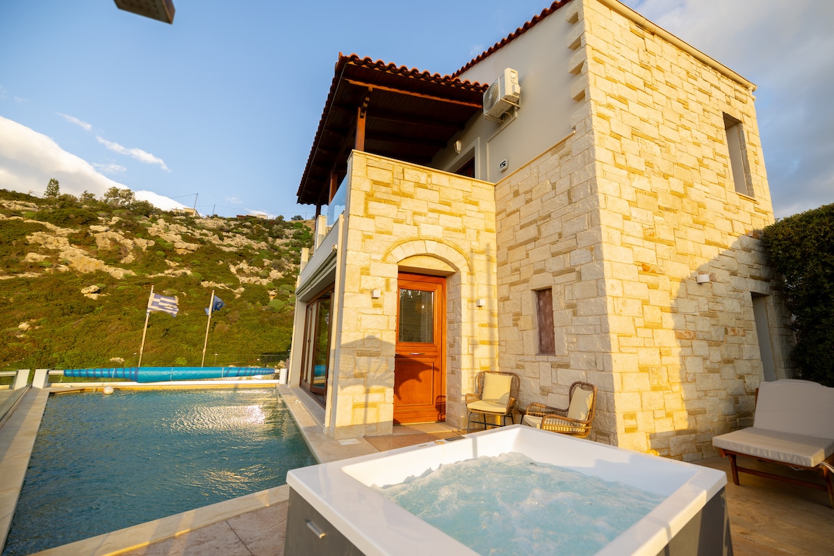 *Envía un mensaje ANTES DE hacer una reservación. Publico en muchos sitios y es posible que mi calendario no esté actualizado. Suelo responder en 1 hora* • Piscina privada CLIMATIZADA con impresionantes vistas al mar y jardín. • Jacuzzi al aire libre climatizado. • Sauna • Gimnasio • Parrilla comedor al aire libre • Impresionantes vistas al mar • Jacuzzi en el baño • A poca distancia a pie de la playa de Almyrida y su restaurante,bar,tienda,taberna,mercado. • A 16 km de La Canea y su Puerto Viejo. • Hecho de madera/vidrio/mármol con detallesy comodidades que te involucrarán con un estilo de vida de lujo