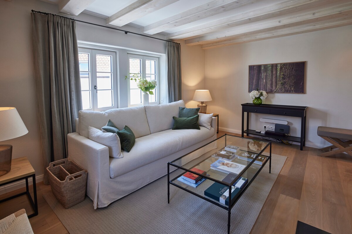 Nuestro loft luminoso y tranquilo en el corazón del casco antiguo de Deidesheim le ofrece todo lo que necesita en dos plantas: una plaza de aparcamiento privada frente al apartamento, aire acondicionado, calefacción por suelo radiante, cama king size (180 cm de ancho), wifi (aprox. 40 Mbit), Netflix, cocina totalmente equipada y asientos en el hermoso patio interior mediterráneo. Los restaurantes de alta cocina, la taberna de vinos rústica o la panadería están a pocos minutos a pie.