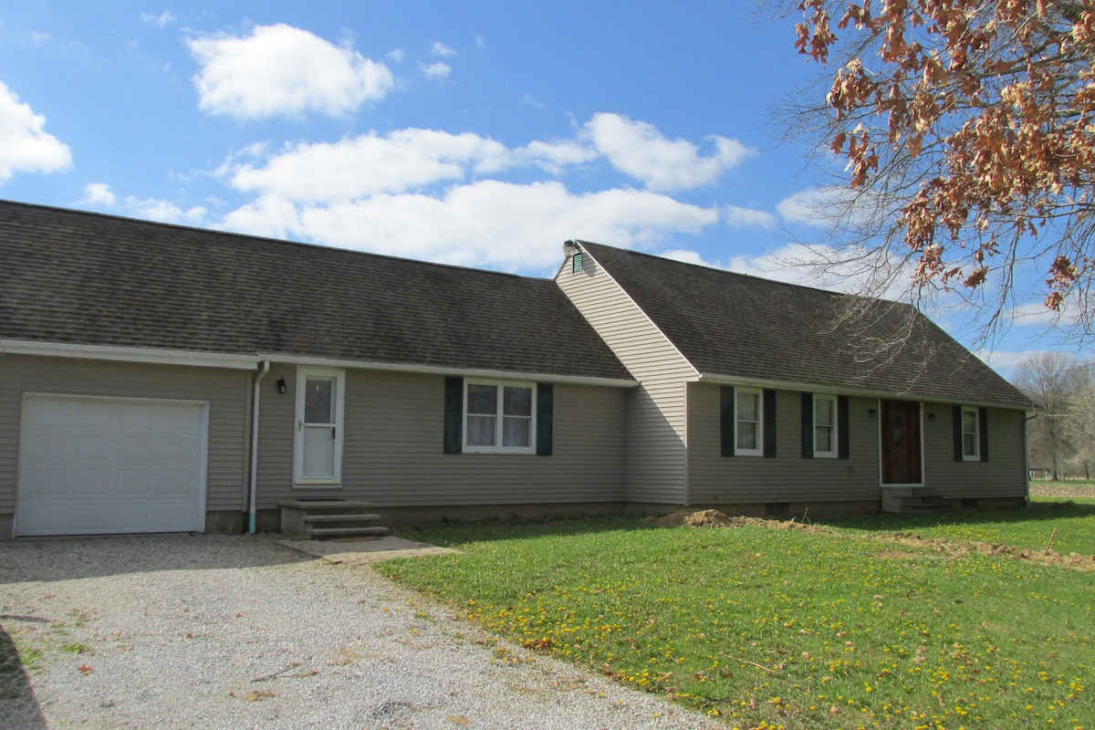 Take it easy at this unique and tranquil getaway. Explore the grounds, relax by the pond, hang out in front of a backyard fire, or stay inside and watch a movie or play a board game. Bedroom has a queen bed, and sofa in livingroom has a pull-out queen bed. 12 min from the Morrow County Fairgrounds. 8 min to Cardinal Shooting Center. 30 min to Columbus, and 38 min to John Glenn International Airport. No pets allowed. There are currently no horses living on the farm.