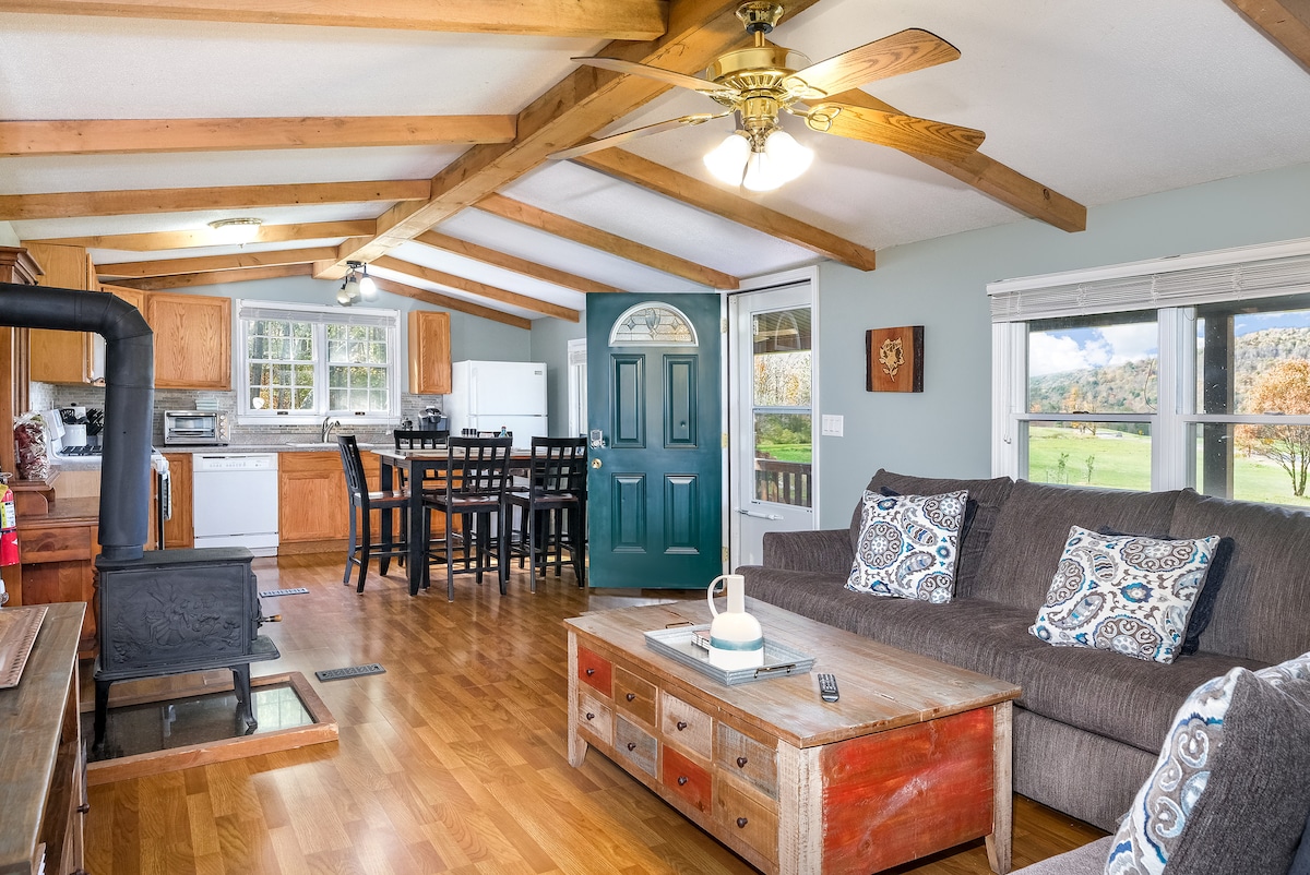 Welcome to Cabin in the Sky! At 1,671 ft elevation, Cabin in the Sky is a newly renovated log cabin nestled in the mountainside with tranquil views. The home offers the perfect combination of seclusion and convenience. In the mornings/evenings, enjoy a cup of coffee or glass of wine from the private deck which overlooks pure nature (not a car, street or building in sight). During the day, take advantage of the local hiking, skiing, farmer's markets, restaurants and shopping.