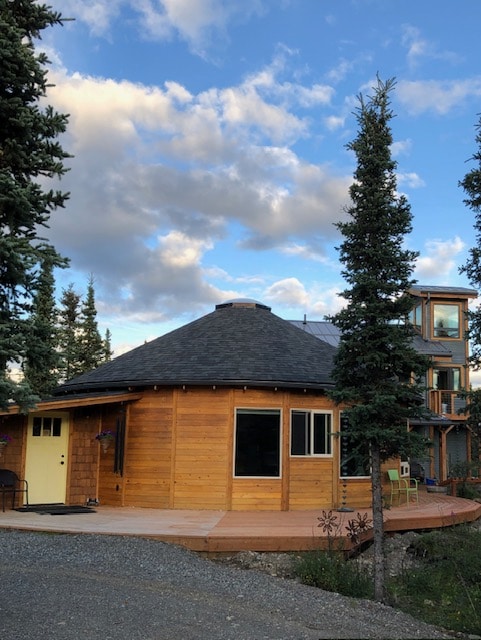 Esta yurta de 16 pies es perfecta para aquellos que visitan el parque Denali, quieren una vista completa de Denali y tienen una vista de 360 grados de nada más que montañas, ríos y bosques. La yurta está a solo 29 millas de la entrada del parque y está equipada con electricidad, cocina de propano, luces, calefacción de estufa toyo para controlar la temperatura, estufa de leña y madera para comprar (10 dólares por paquete). Al estar elevada, puedes salir por la puerta y disfrutar de excelentes vistas y, si el tiempo está despejado, ¡una vista completa de la montaña más alta de América del Norte!