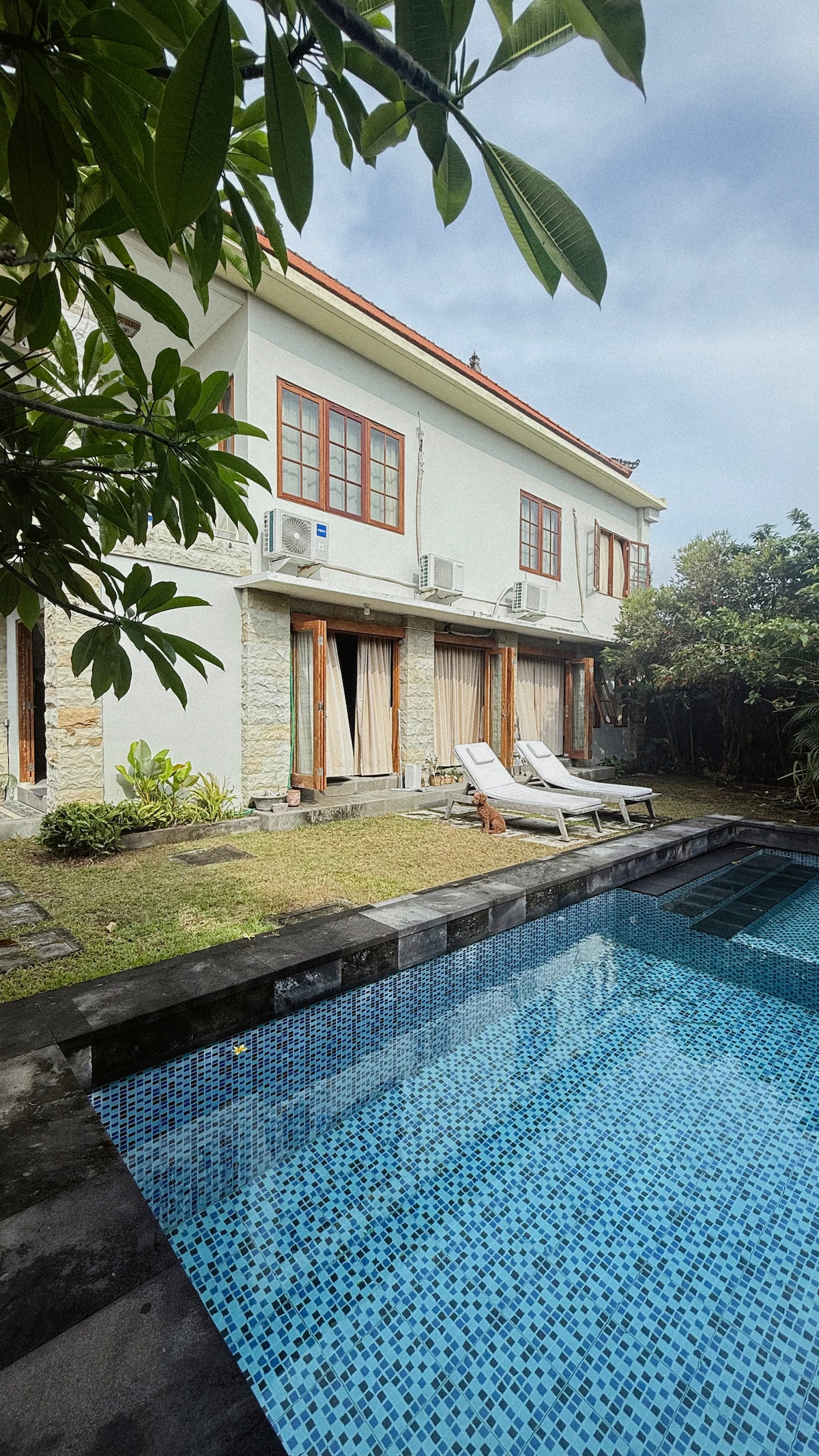 Villa Narda Seminyak – Modern Family Villa near Sunset Road. A brand-new luxury villa perfect for families and groups. Enjoy a private pool, billiard room, mini gym, and rooftop terrace for sunset BBQs. Nestled in a quiet lane yet just steps to cafés on Jalan Dewi Sri, 10 mins to Seminyak & Kuta beaches, and 25 mins to the airport — your perfect Bali getaway.