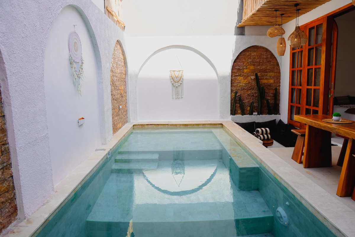 Escápate a esta impresionante villa de estilo mediterráneo en el corazón de Kuta, Bali. Disfruta del lujo de una piscina privada, servicios modernos y un ambiente tranquilo. Ubicada en el animado distrito de Kuta, esta villa está a pocos pasos de tiendas y restaurantes. Disfruta de un fácil acceso a las mejores atracciones de Bali mientras disfrutas de la privacidad de tu propio oasis. No te pierdas esta increíble oportunidad de alojarte en una villa privada en Kuta. Reserva ahora y comienza a planificar tu escapada inolvidable ”.