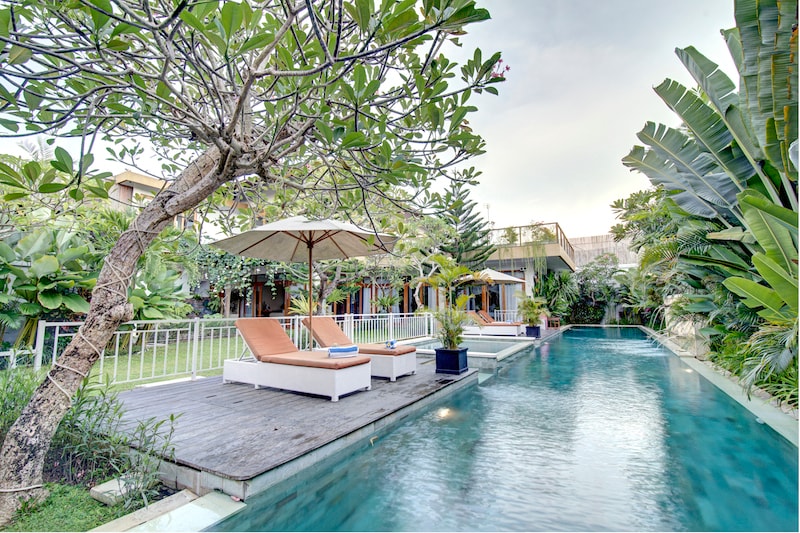 ¡Bahagia Villa desea dar la bienvenida a los huéspedes pasados y futuros de vuelta a Bali después de 2 largos años! Con nuestra apertura completa sin cuarentena cada vez más cerca, hemos estado ocupados volviendo a contratar personal y limpiando y renovando a fondo. Te aseguramos el mejor servicio y la mayor comodidad como antes. Bahagia Villa's es un pequeño complejo de villas de lujo totalmente privadas entre sí y cada una con su propia piscina. Cocina grande y dormitorios con baño privado, construidos alrededor de una piscina privada. TV por cable e internet gratis.