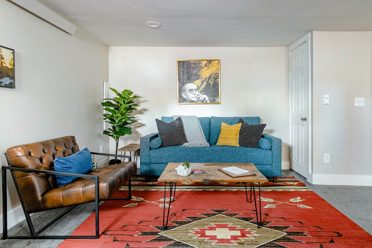 Te damos la bienvenida a Oasis on the Park en Denver. Un apartamento privado a nivel de calle en el hermoso barrio de Jefferson Park. Despierta con vistas panorámicas del parque Jefferson arbolado. La zona limita con el estadio Empower Field at Mile High, sede del equipo de fútbol Denver Broncos (a menos de 5 minutos a pie). El Museo de los Niños de Denver, el Downtown Aquarium y el Platte River Trail. Encontrarás muchos restaurantes y bares a pocos pasos o te quedarás una noche acogedora en Mile High City.