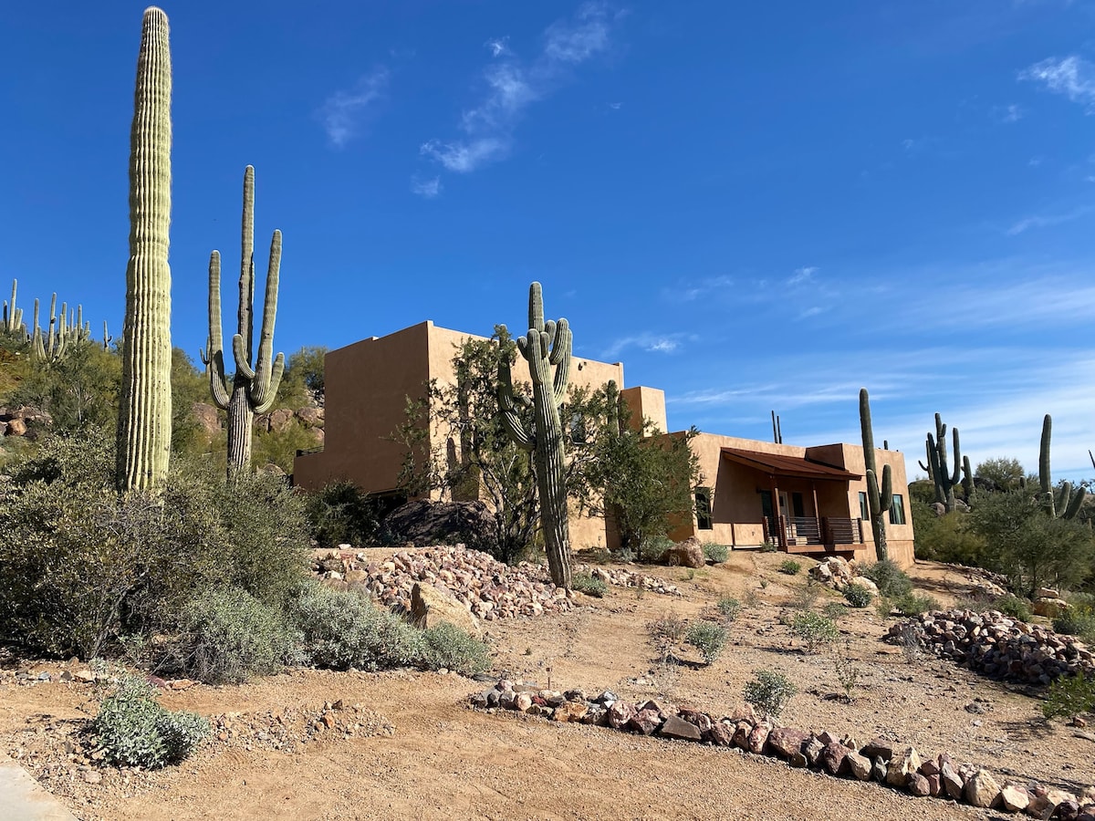 Bienvenido a Casa Cactus, una moderna villa de inspiración bohemia de nueva construcción ubicada en el Parque Nacional Tonto en Scottsdale. Saguaro de🌵 30 pies: ¡está justo en nuestro patio trasero! ¡Y se estima que tiene más de 150 años! ✨ Observación de las estrellas y astronomía Paisaje 🏜 infinito de montaña y desierto Amaneceres y atardeceres🌅 inolvidables. 📽 Proyector y pantalla para ver al aire libre. Toma de🔌 30 amperios para vehículos eléctricos y autocaravanas Chimenea 🔥 interior Roku TV📺 grande Wifi de más de📶 80 Mbps 📏 2200 pies cuadrados, 4 dormitorios