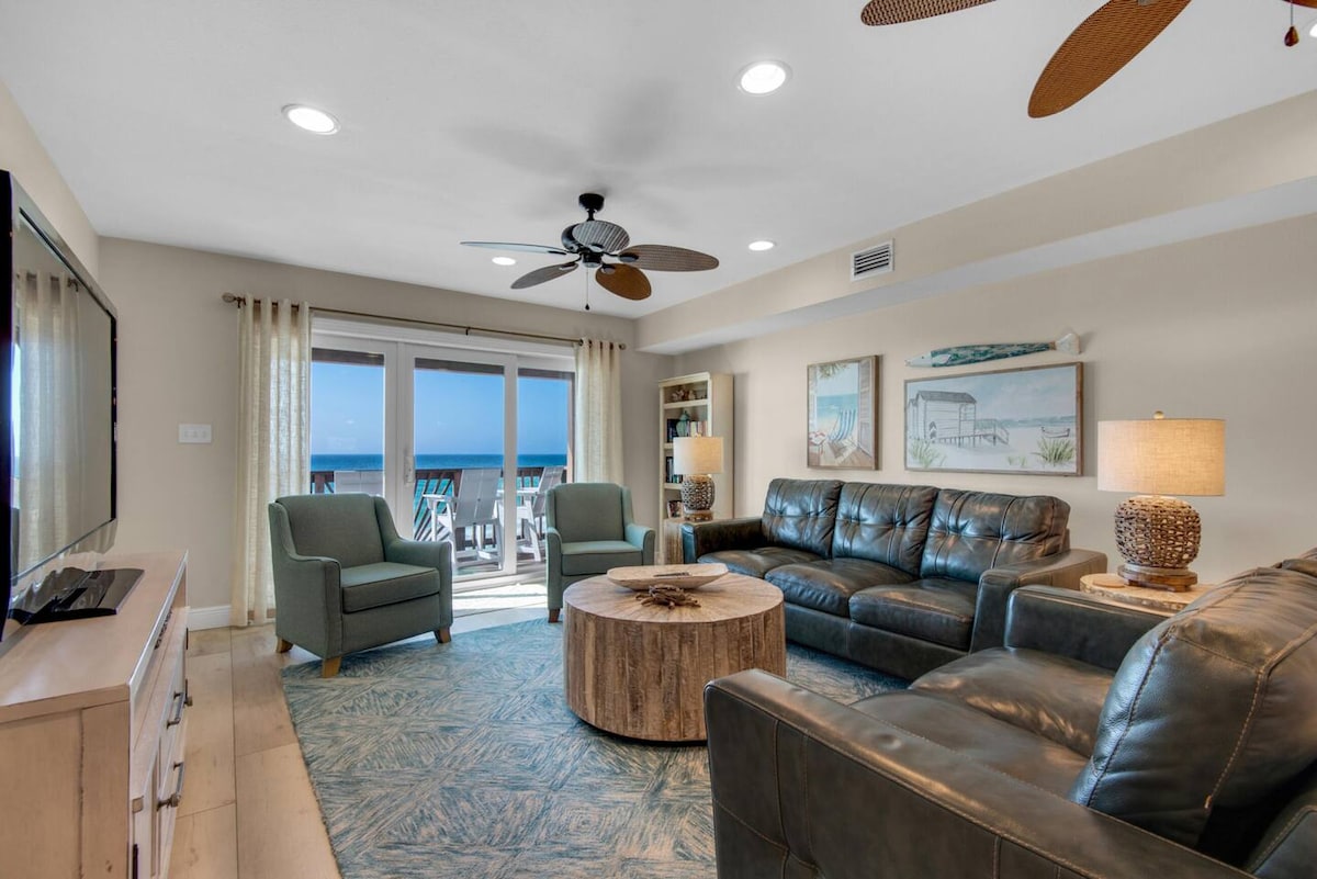 ¿☆☆POR QUÉ ALQUILAR ESTA CASA?☆☆ ✹ FRENTE A LA PLAYA, REMODELADA, casa bellamente decorada con 9 camas Vistas al✹ GOLFO desde las salas de estar, dos dormitorios y 3 patios. ✹ TOTALMENTE ABASTECIDO: equipo de playa, tablas, juegos y mucho más. Acceso ✹ privado a la playa con servicio de playa de cortesía. Jacuzzi ✹ privado y climatizado + piscina comunitaria climatizada. ✹ Tres balcones cubiertos con impresionantes vistas al golfo. Espacio ✹ abierto con chimenea y TV inteligente de más de 55 pulgadas. Televisores ✹ inteligentes y juegos recreativos. ✹ Aparcamiento para 3 - 4 vehículos Internet ✹ de alta velocidad ✹ Ascensor