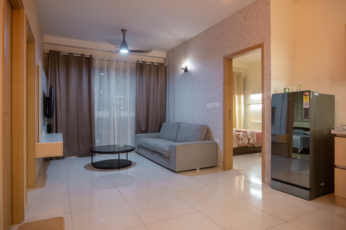 Lujoso 2BHK con amplias vistas a la granja y un raro asiento en primera fila para los despegues y aterrizajes del aeropuerto de Bangalore. Cielos despejados, un entorno tranquilo y una vista cinematográfica desde el balcón que recordarás. A solo 10 minutos de la terminal y justo al lado de la autopista, lo que lo hace perfecto para tránsitos rápidos, vuelos tempranos, viajes de negocios o una escapada tranquila. Interiores modernos, gran luz y la mezcla ideal de calma y comodidad.