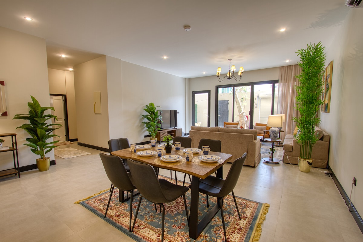 Explore a lavish getaway in the heart of Al Mugharazat district, a sought-after area in Riyadh. Our exclusive unit is just a 5-minute stroll from Al Nakheel Mall, which has a cinema, numerous dining options, cafes, and global brands.