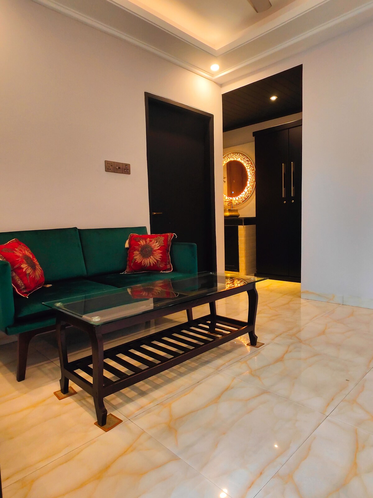 Vuelve a conectarte con tus seres queridos en este lugar apto para familias. La calidad de la habitación es muy buena y el entorno del apartamento también es hermoso. Está abierto en los cuatro lados y siempre hay luz y aire. Lugar adecuado para parejas con familiares para vivir. El gas, el agua y la electricidad siempre están disponibles. La zona es tranquila y cómoda y habitable con un ambiente agradable. Todo en un lugar de seguridad 100% garantizado y de confianza. Lavabos adjuntos. Gracias.