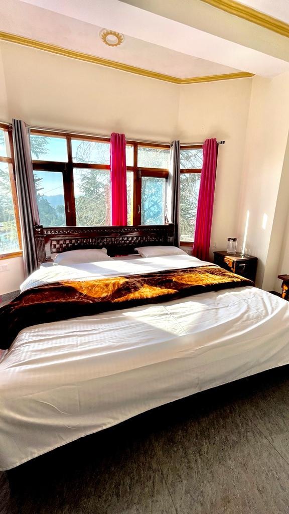 Bonita vista premium BnB en Shimla, donde la comodidad se encuentra con impresionantes vistas y hace que tu estancia sea elevada. Aquí experimentas el lujo enmarcado por la naturaleza en cada ventana, una escena perfecta para una postal.