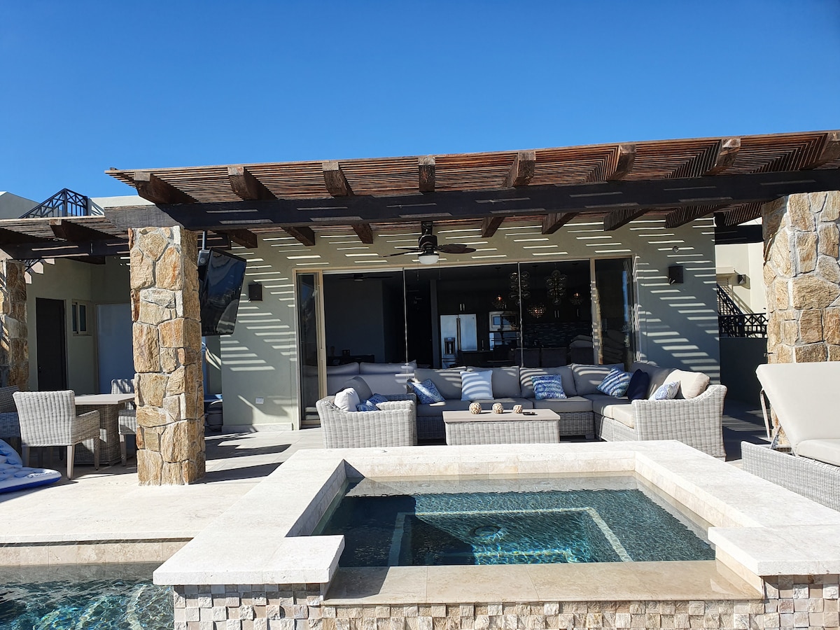 Vive como una estrella de rock en esta villa de 3 dormitorios recientemente remodelada en Cabo Bello, ¡una vez en casa de los Red Hot Chili Peppers! A solo 10 minutos del centro de Cabo, disfruta de acceso privado a la playa, una piscina climatizada y jacuzzi, y las impresionantes vistas al mar. El lujo moderno se encuentra con un ambiente legendario en este exclusivo refugio. Perfecto para relajarse, celebrar o simplemente tomar el sol con estilo. La construcción está terminada; puedes ver las fotos en la propiedad. @celstesbnb