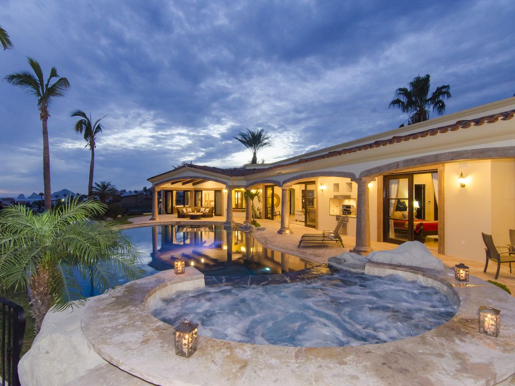 Luxury 5 bedroom home beautifully situated overlooking the Sea of Cortez. Watch the whales and see the famous Cabo Arches while sitting in your private Jacuzzi . The home features a large gourmet kitchen and great room living area, granite counter-tops, new appliances with mostly large bedrooms of which have great views. Enjoy the beautiful private Jacuzzi spa that spills into one of the largest beach entry style heated swimming pools in Santa Carmela.