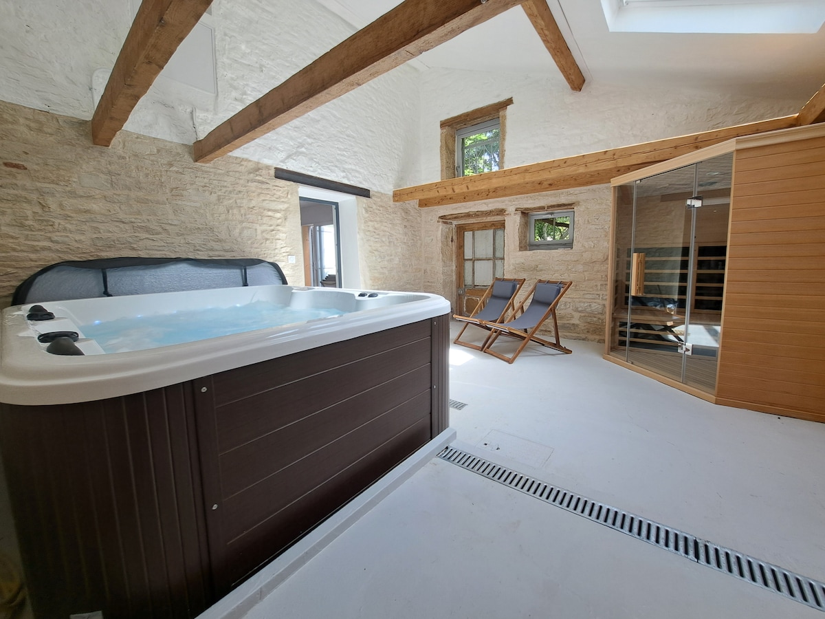 Situado a 10 minutos del centro de la ciudad de Dijon, le propongo vivir un momento de relajación y complicidad para dos, en un capullo minuciosamente confeccionado para usted. Un jacuzzi único con un confort y un diseño de alta gama, un perfil ético exclusivo para optimizar un masaje relajante. Una sauna, un excelente antiestrés que fomenta la relajación de los músculos y estimula la circulación sanguínea. Una cama de lujo, con un contacto envolvente y un apoyo firme para una noche encantadora.
