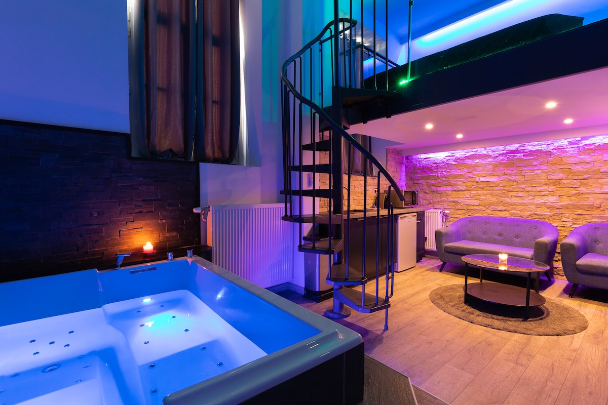 ✨ Escápese a un lugar fuera de lo común, donde el lujo y la sensualidad se encuentran. Balneario privado, sauna, sillón tántrico y zona de juegos de mesa te invitan a la relajación y el placer. Déjese sorprender por una experiencia inmersiva única: un misterioso juego de acertijos diseñado para sumergirlo en una aventura íntima y llena de sorpresas. En este entorno refinado, todo está pensado para parejas que buscan complicidad: un ambiente elegante, luces suaves y comodidad de alta gama.