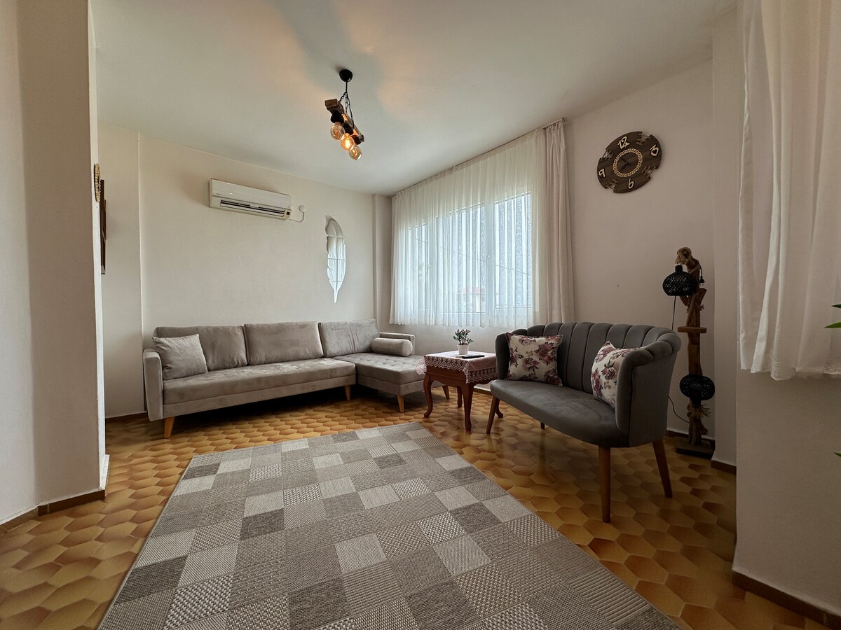 Nuestro apartamento con jardín está situado en el centro de Ayvalık, a dos minutos a pie del barrio de Macaron y del mar. Tiene un jardín lleno de flores donde puedes experimentar la belleza de Ayvalık. Todo lo que necesitará durante sus vacaciones ha sido pensado hasta el más mínimo detalle y amueblado con gusto. Es un lugar espacioso, sencillo y agradable donde pueden alojarse cómodamente cuatro personas. Este apartamento, en el que puede alojarse cómodamente en todas las estaciones, ha sido preparado con esmero para ser su hogar en Ayvalık.