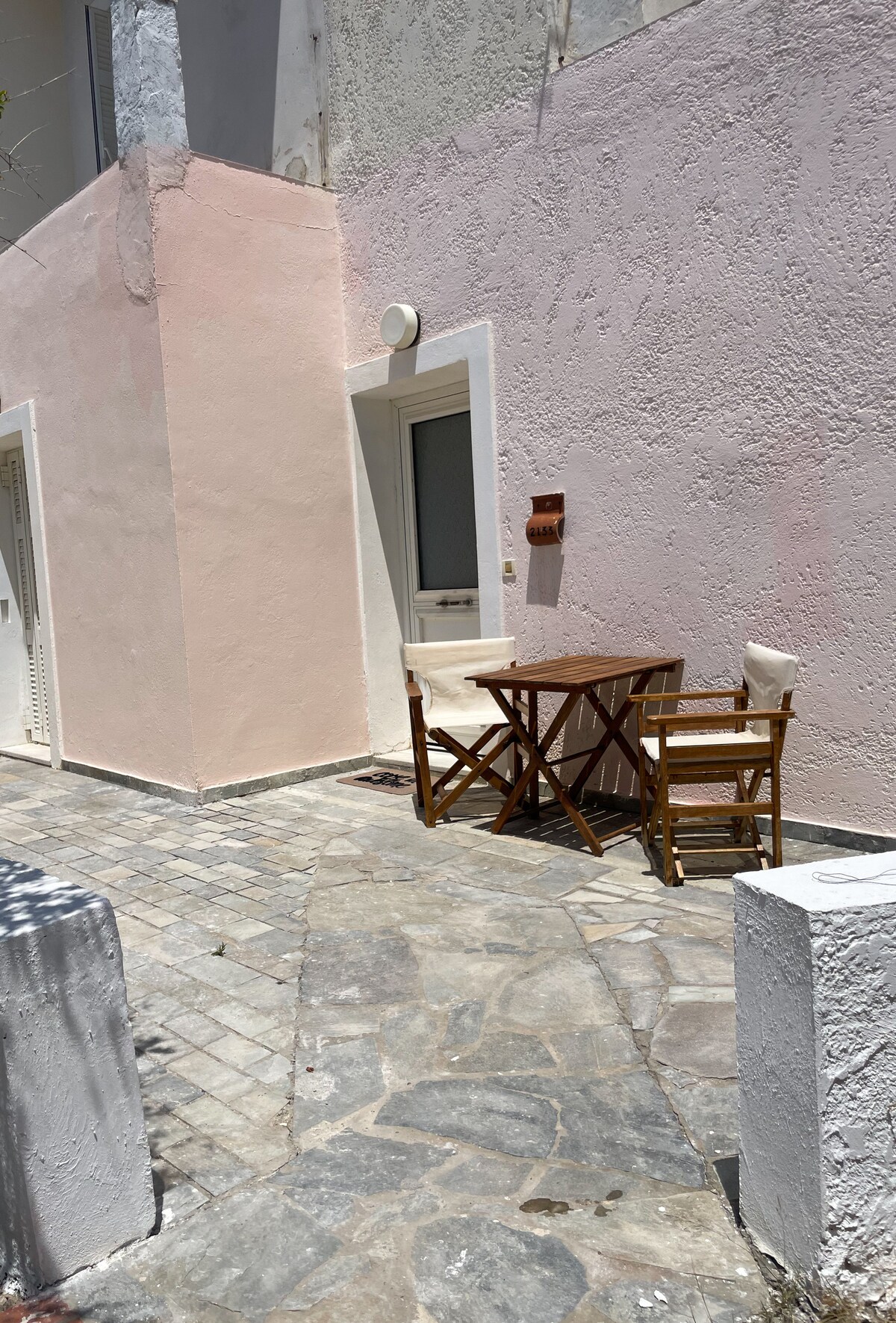Casa de 40 m² con patio en una tranquila calle peatonal en el centro del pueblo, a 100 metros de la plaza donde se encuentran todas las tiendas tradicionales, tabernas, cafeterías, minimercados, carnicerías y fruterías. A 1,5 km se encuentran las playas de Chiona y Kouremenos y a unos 6 km la playa de Vai con su exótico palmeral y la playa de Erimoupoli.