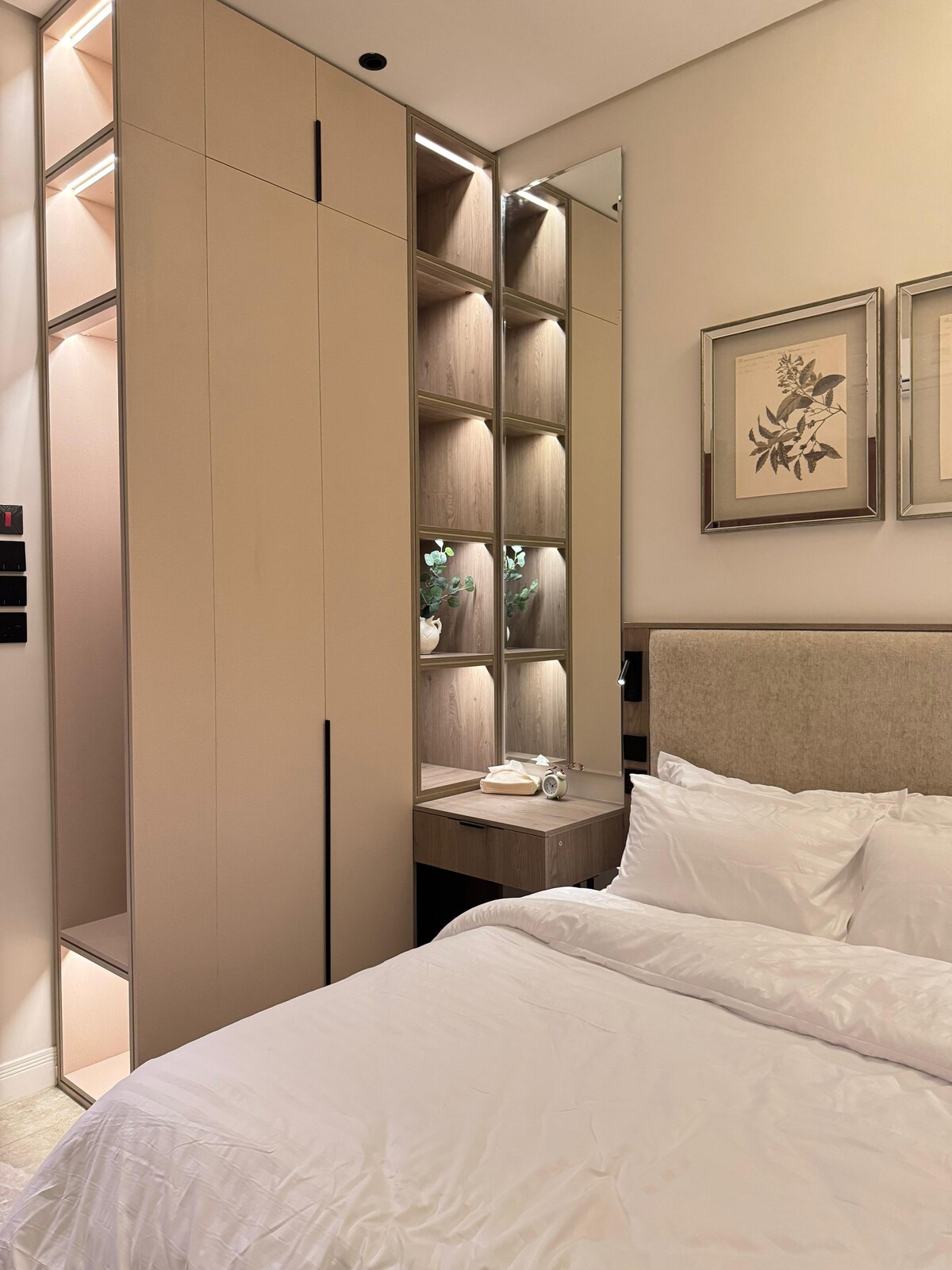 Moderno apartamento de 1 dormitorio en Hittin, una de las ubicaciones más privilegiadas de Riad, a pocos minutos de Boulevard City y de las mejores cafeterías. Diseñado para ofrecer comodidad y facilidad, con llegada autónoma y un sistema inteligente completo. Cuenta con una acogedora sala de estar, un dormitorio cómodo, un televisor inteligente de 85 pulgadas y una elegante chimenea eléctrica para crear un ambiente relajante. Cocina totalmente equipada con horno, microondas, estufa eléctrica, lavavajillas y lavadora. Limpio, elegante e ideal para parejas, viajeros de negocios y estancias cortas o prolongadas.