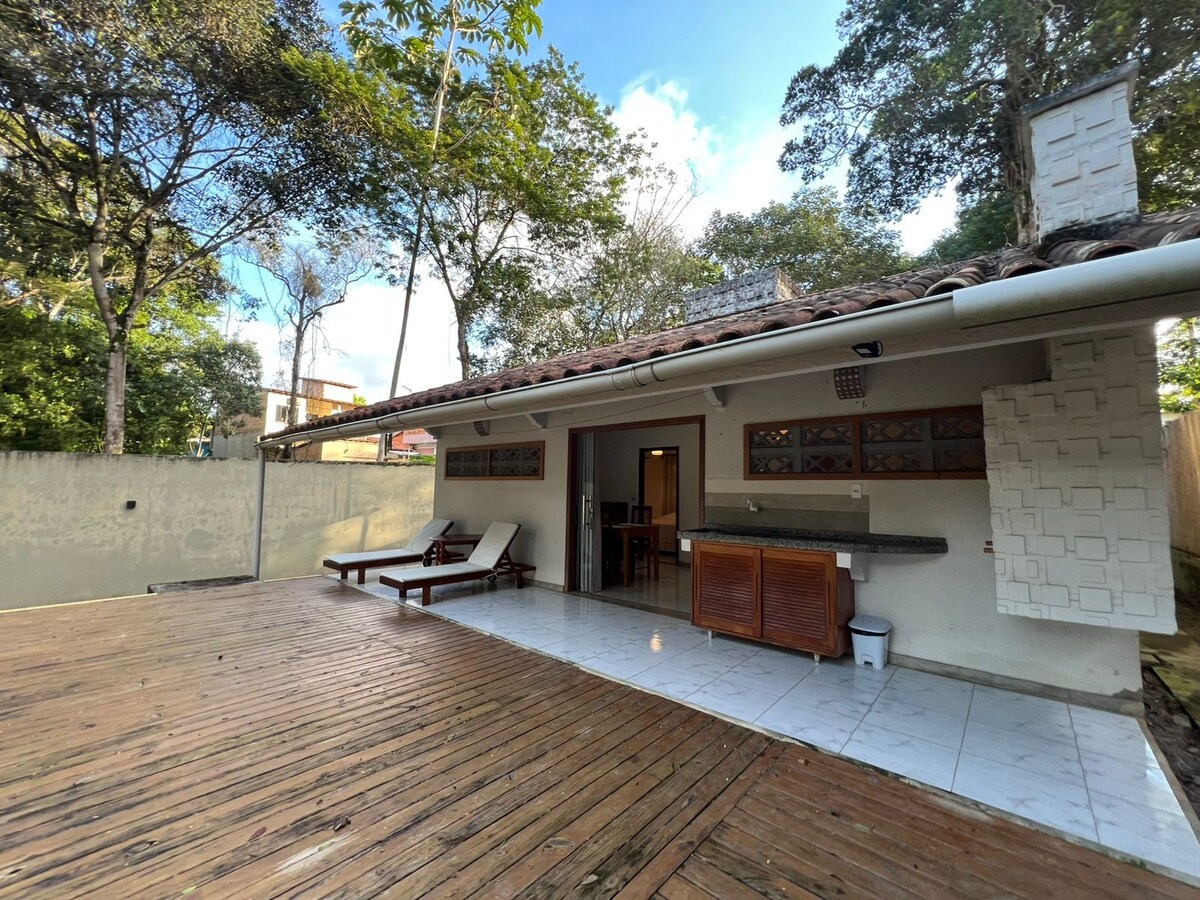 La casa está ubicada dentro del condominio "Morada Verde" en Arraial d'Ajuda, rodeada de naturaleza pero cerca del centro histórico (a 5 km de distancia). Tiene un espacio privado de 350 metros cuadrados con piscina privada, brasero y estacionamiento interior para automóviles. La playa más cercana es una de las más queridas por los turistas, la playa do Taipe.