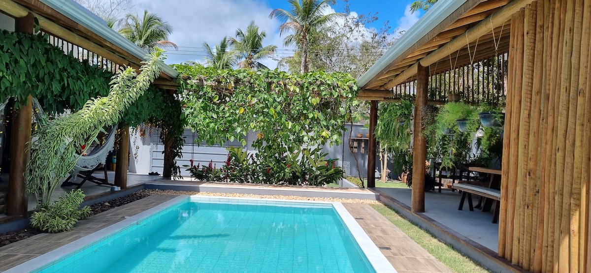 Abraza la sencillez en este lugar tranquilo y bien ubicado. Estamos a 10 minutos en coche del ferry que conecta Porto Seguro con Arraial D'Ajuda. Caminando 5 minutos llegamos al centro de Arraial donde podemos encontrar un supermercado, farmacia, centro de salud, distribuidor de bebidas, feria de artesanías, la famosa y encantadora Rua do Mucugê, donde se encuentran los mejores bares y restaurantes de Arraial D'Ajuda. Después de 15 minutos a pie se encuentra Praia do Mucugê, Praia dos Pescadores y el Eco Parque.