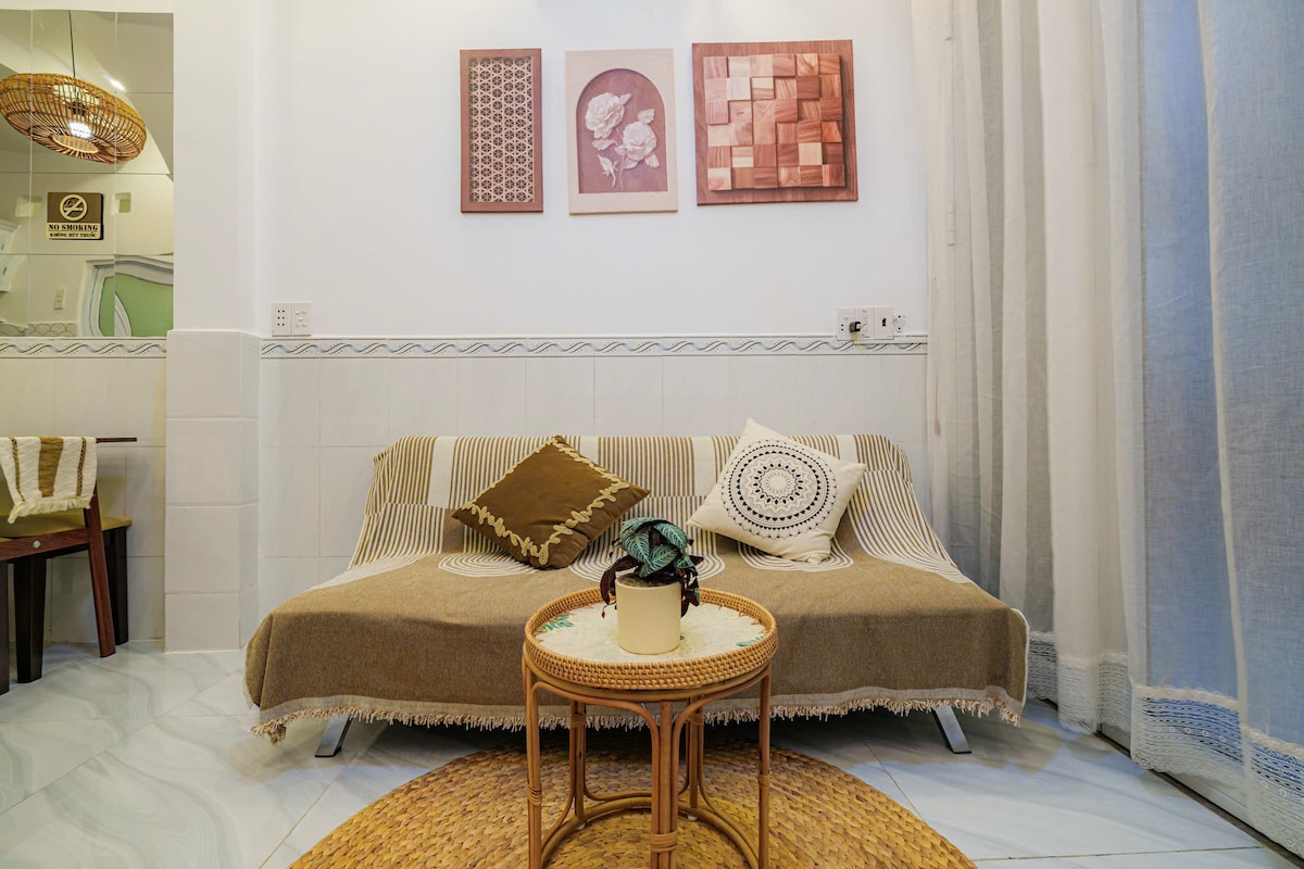 Studio apartment with unique design located in a lovely alley in Saigon Center. The studio is located on the 2nd floor of a townhouse, of which the 1st floor is the lovely BeanThere cafe. It only takes a few minutes to reach attractions and nightlife activities. Besides, there is also a kitchen to cook basic meals. One breakfast (01 food and 01 drink) / guest / night in Beanthere cafe. We offer free housekeeping for bookings longer than 4 nights. If needed, you can notify 1 day in advance.