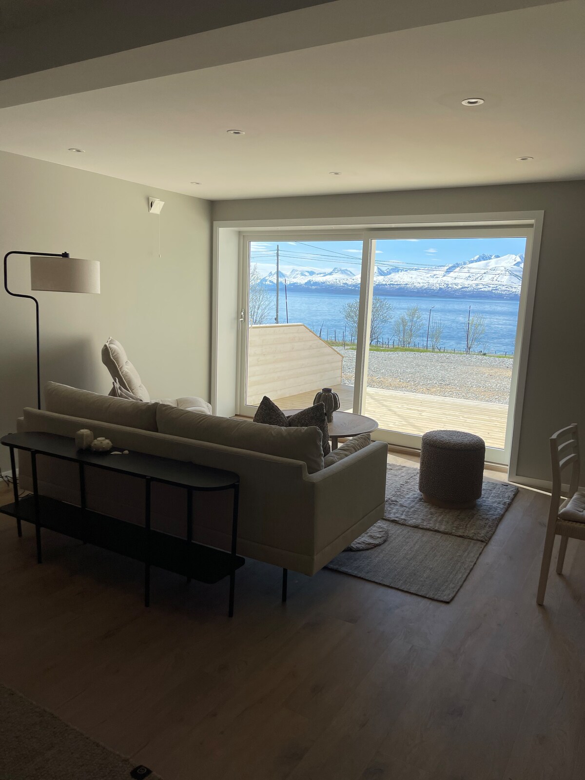 Modern and cozy home, overlooking the beautiful Lyngen Alps. The best thing about this peaceful retreat is the location, right in the middle of nature, secluded and only minutes from beautiful hikes, world class skiing. The meadow where the house sits, extends all the way down to the pebble beach. In the winter, watch the northern lights above the lodge. In the summer, sit on the terrace all night enjoying the midnight sun. The house was built in 2016, well-equipped, very comfortable beds.