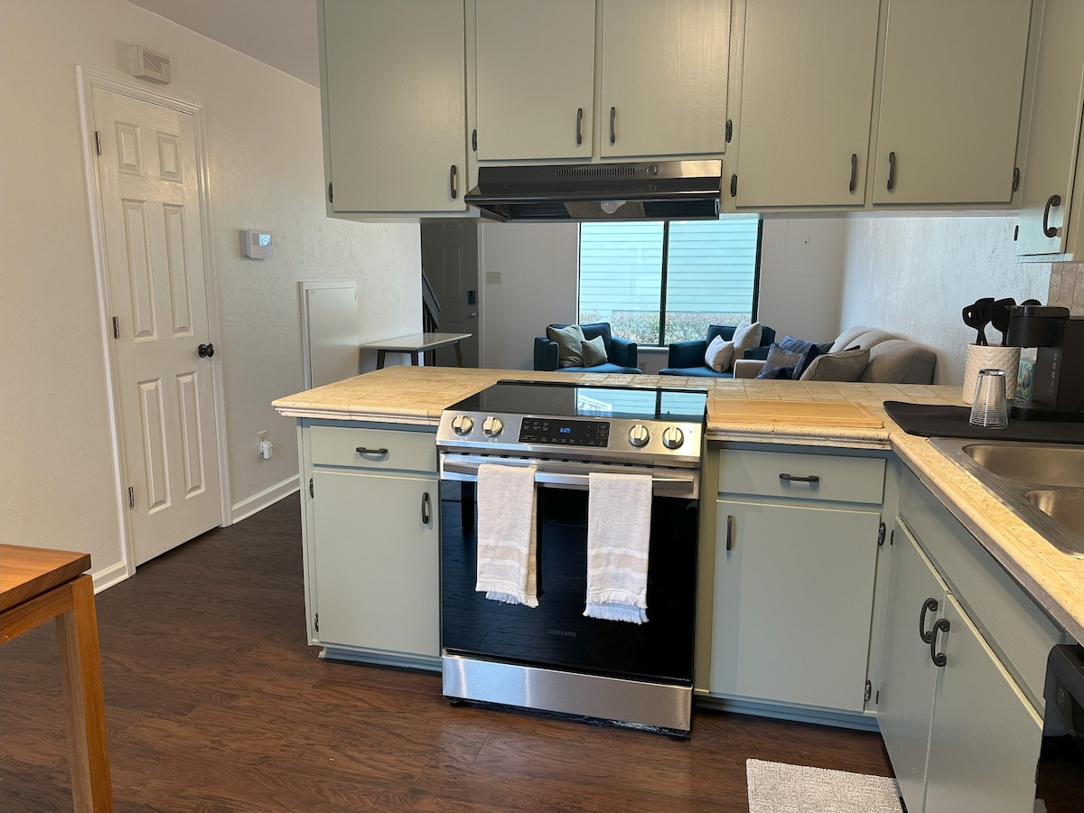 Disfruta de una escapada en esta casa adosada limpia y moderna, convenientemente ubicada. Con 2 dormitorios: uno con una cama tamaño king y otro con 2 camas tamaño queen. Cada dormitorio tiene un televisor inteligente Roku. La cocina para comer cuenta con una cafetería y una selección de té, mesa de comedor para 4 y 3 taburetes. Estacionamiento reservado para 2 autos. A 10 minutos a pie del estadio Doak. También está cerca del centro, el centro de convenciones, restaurantes, el aeropuerto, Collegetown y todos los campus. ¡Ven a ser nuestro huésped! (NO FUMAR en el interior)