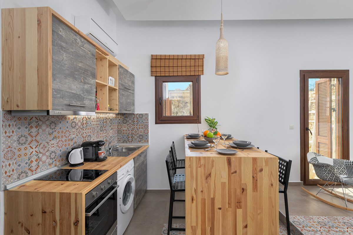 Acogedor apartamento en el corazón de Thira . Una habitación para dos con una cama muy cómoda, un bonito balcón y una pequeña cocina equipada con todo lo necesario para tu estancia . Una pequeña piscina( no privada )para los días soleados. Estamos ubicados a solo 100 metros del centro, pudiendo proporcionarte una estancia agradable y tranquila, pero también poder llegar a todo a 2 minutos a pie. Cerca de la estación de autobuses, restaurantes , cafeterías y bares.