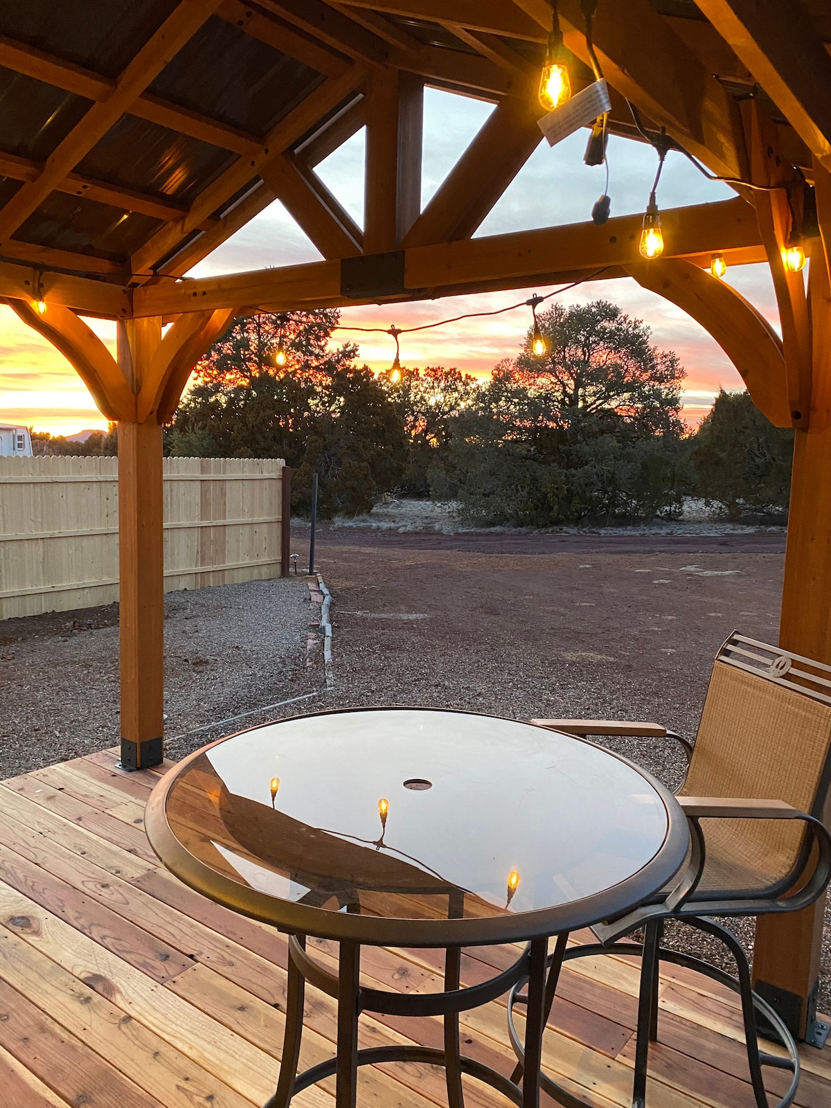Discover magical and dreamy Tiny Timbers...perfect for a staycation or a quick weekend trip to the Grand Canyon for two people. This charming and cozy mountain retreat has a cozy and private gas fire pit area to enjoy the cool summer evenings or morning coffee in the gorgeous yard. It also includes an outdoor cafe table for dining al fresco. The tiny home is located at the back of a large property with another home. The main home can be viewed here: https://www.airbnb.com/h/mountaindigs
