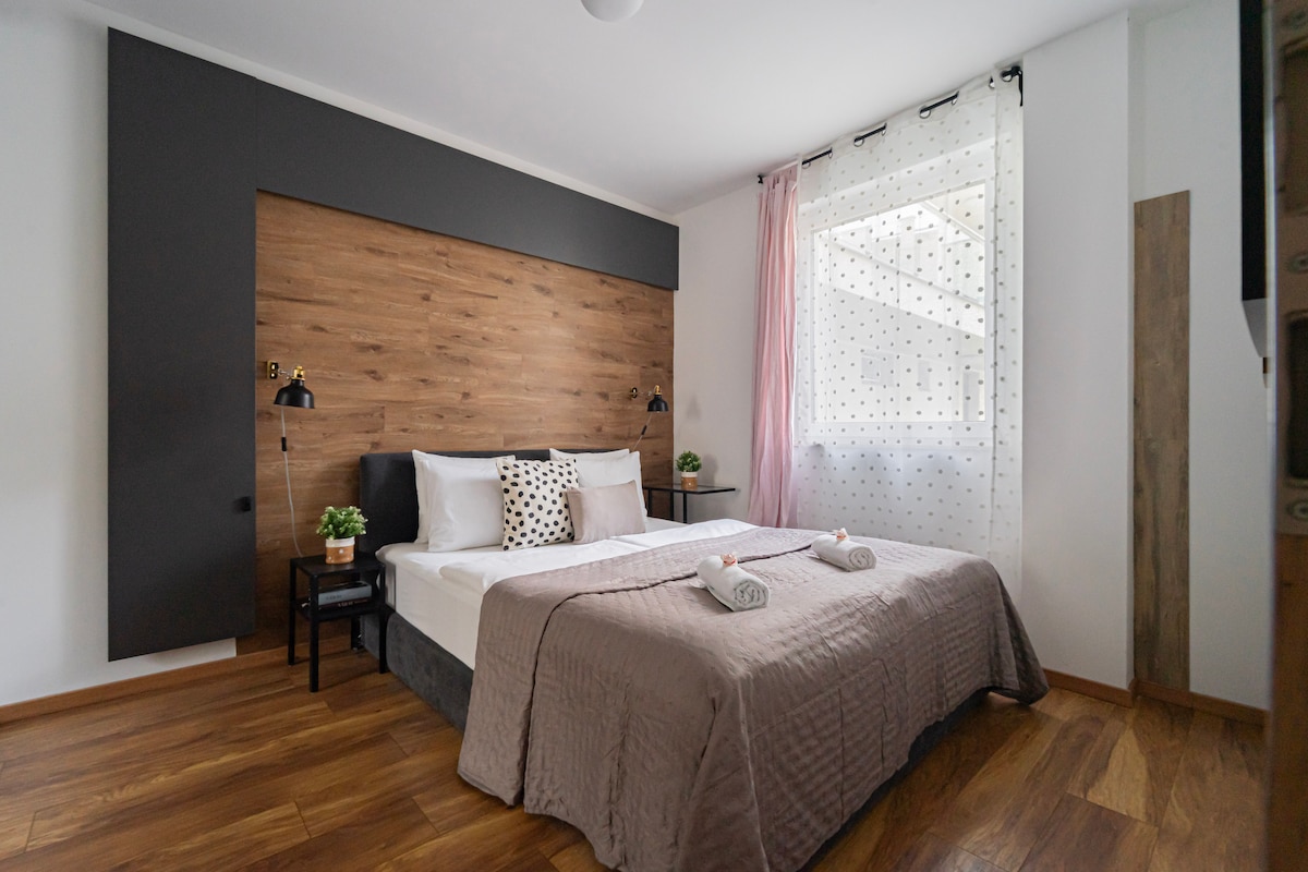 ¡Te damos la bienvenida a tu base de operaciones en el barrio judío! Este flamante estudio en el barrio más emocionante de Budapest ofrece tranquilidad en el último piso con balcón privado. Camina hasta los bares de ruinas de fama mundial, la Gran Sinagoga y el Danubio en minutos. El confort moderno se une a la auténtica vida del Distrito VII: cama tamaño queen, sofá cama para 4 personas, cocina totalmente equipada y un raro estacionamiento subterráneo (15 €/día). Check-in sin restricción de horario, asistencia 24/7, administrado por Superanfitriones. Tu aventura perfecta en Budapest comienza aquí.