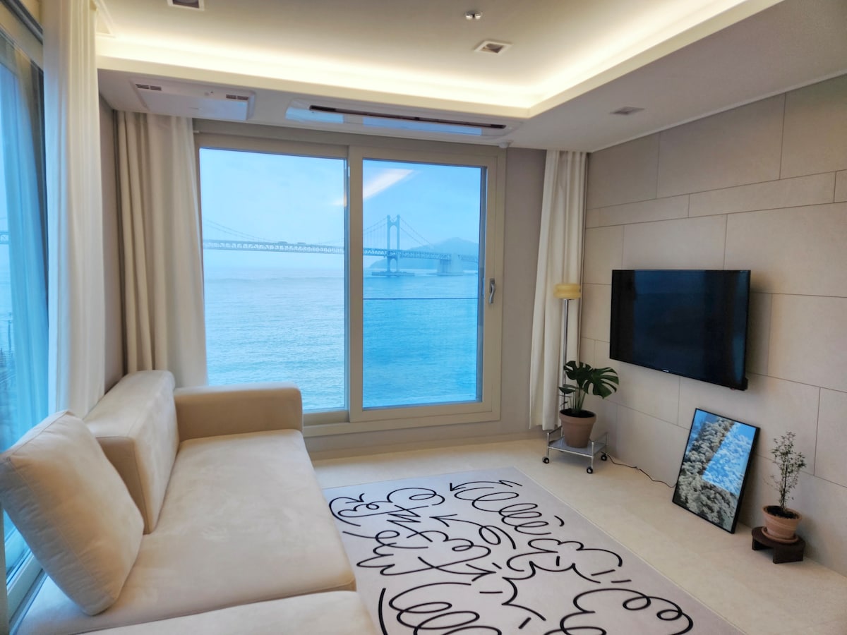 🌊밀락더마켓 바로 옆, 광안대교와 바다가 한눈에 보이는 숙소입니다! 🌊광안대교가 정면으로 보이는 광안리 최고의 뷰를 가지고 있습니다. 🌊깔끔하고 쾌적한 신축 숙소이며 넉넉한 공간, 감성 있는 인테리어 소품들, 다양한 어메니티가 구비 되어 있습니다. 🌊호텔 급의 최상의 룸 컨디션으로 매일 침구류 세탁합니다. 🌊해변 도보 3분 거리에 위치하여 시끄러운 중심가를 살짝 벗어나 안락하고 쾌적하게 머무르실 수 있습니다. 🌊건물 내 무료주차 가능하십니다. 🌊기준 2인, 최대 5-6인 (토퍼 제공, 소파 취침 가능, 침구류 추가 제공) 🌊침실 2개, 거실, 욕실, 파우더룸, 세탁실 완비 🌊샤워실 분리되어 있습니다. 🌊체크인 16:00 체크아웃 12:00 (근처에 캐리어 보관상점 있습니다.) 🌊아기의자 준비되어 있습니다 :) -본 숙소는 미스터멘션 특례를 적용받아 내국인 공유숙박 합법 업체로 등록되어 운영되고 있습니다 !