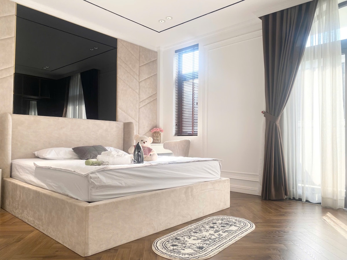Villa Tọa Lạc Tại Trung Tâm Thành Phố Hồ Chí Minh Xinh Đẹp -Diện tích 1000m2, thiết kế các phòng sang trọng và đồ nội thất cao cấp - Hồ kích thước đẹp và không gian vui chơi mát mẻ - Biệt thự thiết kế 6 phòng ngủ, mọi phòng ngủ đều đẹp và hiện đại, đầy đủ các tiện ích - 6 Phòng tắm đầy đủ và đồ dùng cá nhân, - Phòng bếp cung cấp đầy đủ đồ dùng nấu bếp: lò vi sóng, lò nướng, nồi cơm điện, bình siêu tốc, tủ lạnh, chén bát đĩa - Sân rộng, thoáng mát, có thể tổ chức tiệc tùng thoải mái
