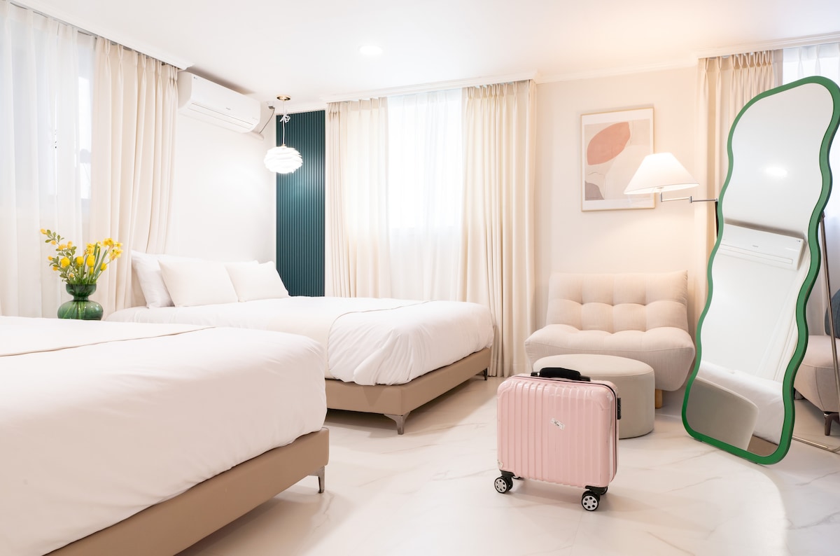 NUEVO ABIERTO Frente a la salida 3 de la estación de Hongik University, habitación 3 + sala de estar y cocina (3 camas queen, 1 cama individual)