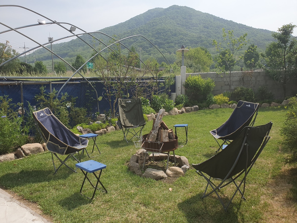 ☆ Haremos todo lo que esté en nuestra mano para que tu día sea cómodo y curativo. ☆ El espacio delantero está vendiendo makgeolli en movimiento (espacio separado) Horario de ventas de Makgeolli (8:00 a. m. a 8:30 p. m.) Consulta la foto detallada y haz una reservación. ☆ Nuestro alojamiento es adecuado para 4 personas (máximo 7 personas) (Gratis para un máximo de 4 personas, cargo adicional de 15.000 KRW por persona para más de 4 personas) ☆ El alojamiento está bien climatizado en invierno. ☆ Hay un valle de agua que fluye detrás del alojamiento, por lo que puedes disfrutar jugando en el agua. ☆ Puedes disfrutar de muchas atracciones alrededor del valle de Baekun, el lago Sanjeong, el observatorio de hierro del paisaje, etc. ☆ Puedes cosechar tanto como puedas comer el mismo día (lechuga, cebolla, etc.) en el campo trasero (verano). ☆El exterior es un espacio común Prohibido fumar☆ en interiores. ☆ El número máximo de huéspedes es ★7 (ideal para familias ~) - Solo casa. - Amplio estacionamiento frente a la casa. - Hay un lugar de barbacoa externo (parrilla, pinzas incluidas) (carbón, plato de carne preparado individualmente) Disponible en invierno - Fogata disponible (uso propio) - Puedes jugar en el valle a través de las escaleras traseras (verano).