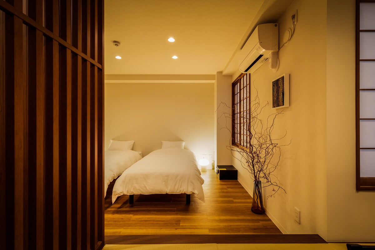 5-1NewOpen/4人双大床|步行即到地铁|直通机场/难波/天王寺/梅田|眺望通天阁&阿倍野