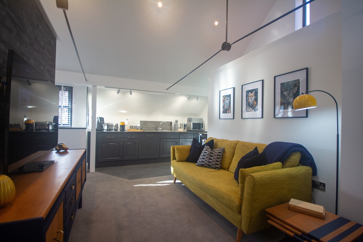 The Finings es un apartamento contemporáneo de un dormitorio en el segundo piso en una cervecería renovada ubicada en un bonito pueblo de Somerset. El alojamiento cuenta con todo lo que necesitas para una estancia relajante, un cómodo sofá, TV, cocina bien equipada y un acogedor dormitorio con baño privado. Incluso hay una piscina y gimnasio compartidos. Estacionamiento gratuito. Ubicado cerca de Wells y a 30 minutos de Bath, Bristol y Longleat. La costa de Somerset también está a menos de una hora. El pueblo tiene un gran pub a pocos pasos. ¡Más de 200 reseñas de 5 estrellas!