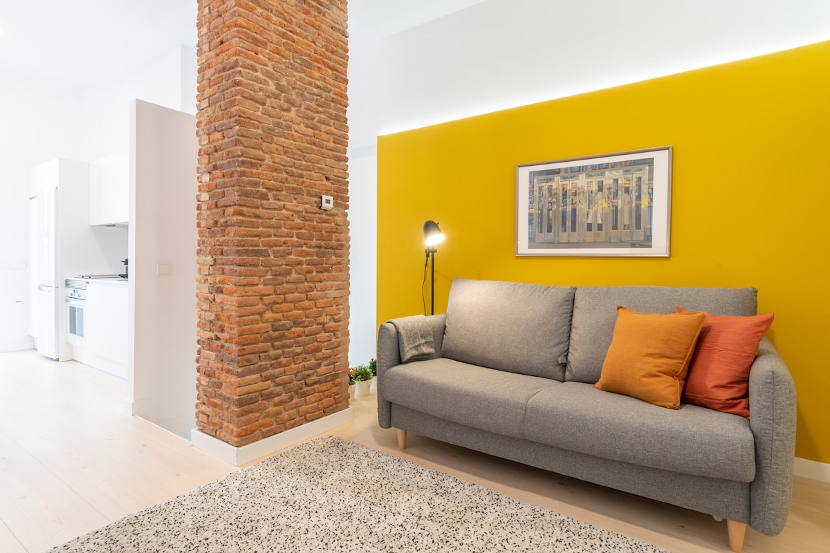Open the balcony's doors and bring a cup of coffee to a bistro table overlooking a leafy neighborhood. A popular area, for its fine living. The view is relaxing—a mood that's reflected indoors as well. Minimalist furnishings are reassuringly sturdy and stylish, adding to the calming ambiance. Comfort and functionality with a fully equipped kitchen. The studio is an open space, refurbished with high quality materials, to create a minimalist space with all that you need for a comfortable stay.
