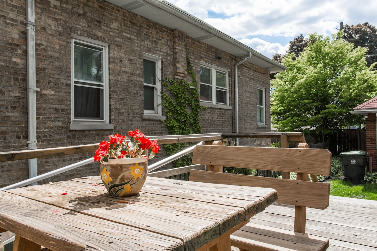Relájate y desconecta en este alojamiento tranquilo y elegante. Ubicado en la histórica Bronzeville, nuestro moderno estudio cuenta con sala de estar de planta abierta, acabados elegantes y mucho espacio para alojar hasta 3 huéspedes. Nuestro estudio con jardín se encuentra a poca distancia a pie de la estación de la Línea Verde, a 10 minutos en coche del centro de la ciudad, a 15-20 minutos del aeropuerto Midway, a 5 minutos del lago Míchigan y a 5 minutos del centro de convenciones McCormick Place, el IIT y Hyde Park/Universidad de Chicago.