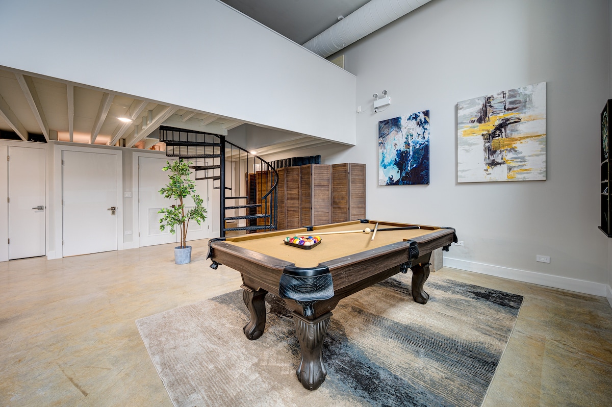 Moderno y elegante loft en West Town con mesa de billar