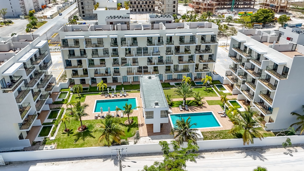 This beautiful new studio 1 bedroom 1 bathroom at the third floor with furnished balcony and beautiful view on the pool and the yard is located in Downtown Punta Cana, one of the best location for entertainment and nightlife at walking distance. It's also very convenient for people coming for business as you will be close to the main attractions and you will be able to relax after work by the pool or go to the gym.