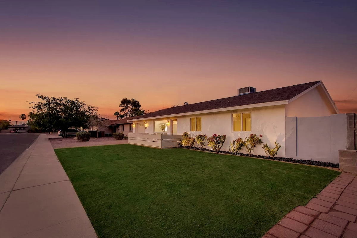 Desert Cove Sunset Retreat es un tranquilo refugio en Scottsdale que ofrece vistas panorámicas del atardecer, un oasis privado en el jardín trasero y casi 250 metros cuadrados de cómodo espacio habitable. Esta casa de 4 dormitorios cuenta con una sala de estar abierta, una cocina renovada, una suite principal tipo spa con acceso al patio, una tranquila fuente en el patio y un cargador para vehículos eléctricos; es perfecta para escapadas relajantes en el desierto, a pocos minutos de restaurantes, campos de golf y rutas de senderismo en Scottsdale.