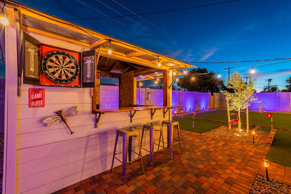 ¡Nueva CASA! ¡Marzo de 2024! ¡PISCINA CLIMATIZADA GRATIS EN INVIERNO Y JACUZZI + CERO TAREAS DE LIMPIEZA! ¡NO PAGUES POR LA CALEFACCIÓN DE LA PISCINA EN EL AIRBNB DE OTRA PERSONA! - NUEVA y hermosa casa remodelada de 3 dormitorios con patio trasero estilo resort, ¡a solo minutos del casco antiguo de Scottsdale! Piscina climatizada gratuita, jacuzzi, chimenea, minigolf, ping pong, ajedrez gigante, wifi más rápido y televisores inteligentes. La casa está totalmente equipada con una barra de café de cortesía, barbacoa al aire libre y el césped más hermoso para que toda la familia disfrute. ¡TV POR CABLE!