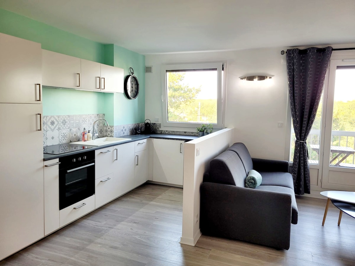 Estudio de 20 m2 con jardín, independiente en la planta baja de una villa . Cocina equipada con todos los utensilios útiles para cocinar. Baño separado con toallas grandes. Cama grande (160x200), dos sillones con una mesa. ¡Posibilidad de estacionar en la calle! Un cargador de 7,5KWh para el automóvil eléctrico. ¡Wifi fibra + Smart TV! El apartamento es para no fumadores. ¡Ofrecemos té, café y azúcar, y especialmente fideos instantáneos para su desayuno!