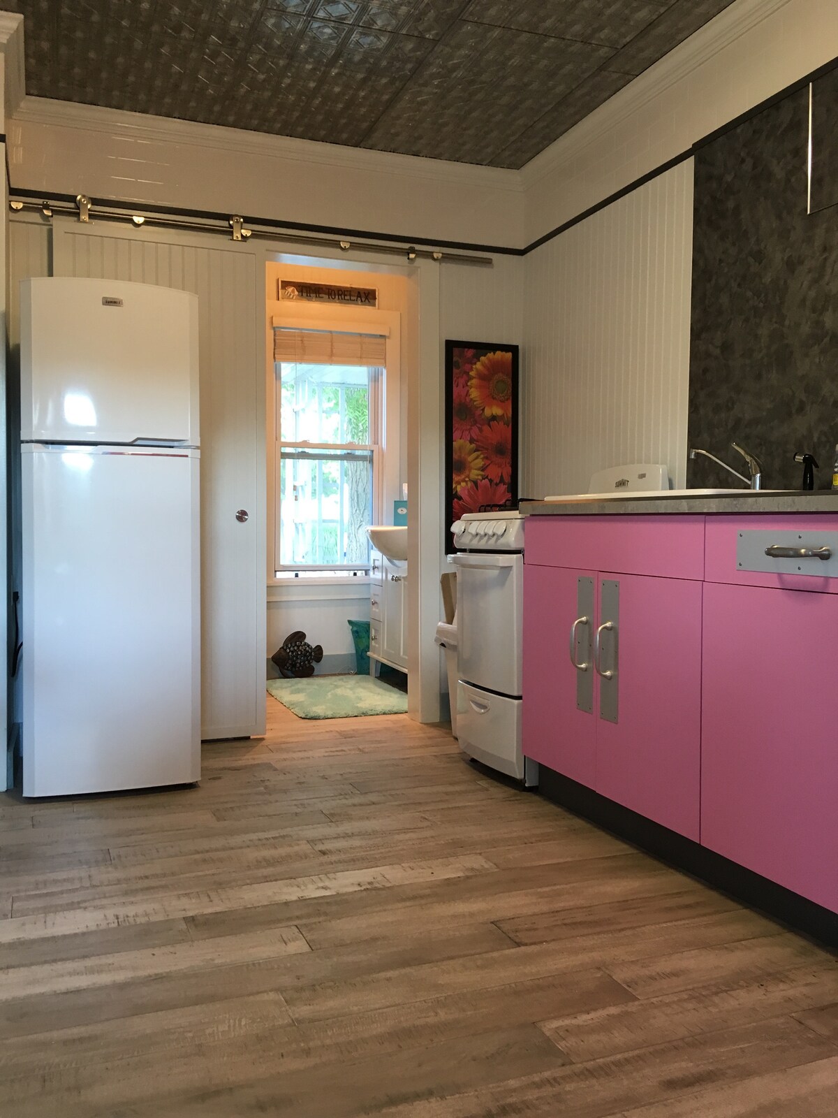All things sweet - we love & we hope you do too! Your stay is right above our Ice Cream Parlour in downtown Thamesville! So you can be sure if your stay is in our "open" season we will be treating you to a free scoop! Candy machines fill this stay so be sure to bring a pocket full of quarters; as well as you will find a few quarters on us! We are so glad your staying in our unique, bright & fun retreat & we hope your stay is super SWEET!