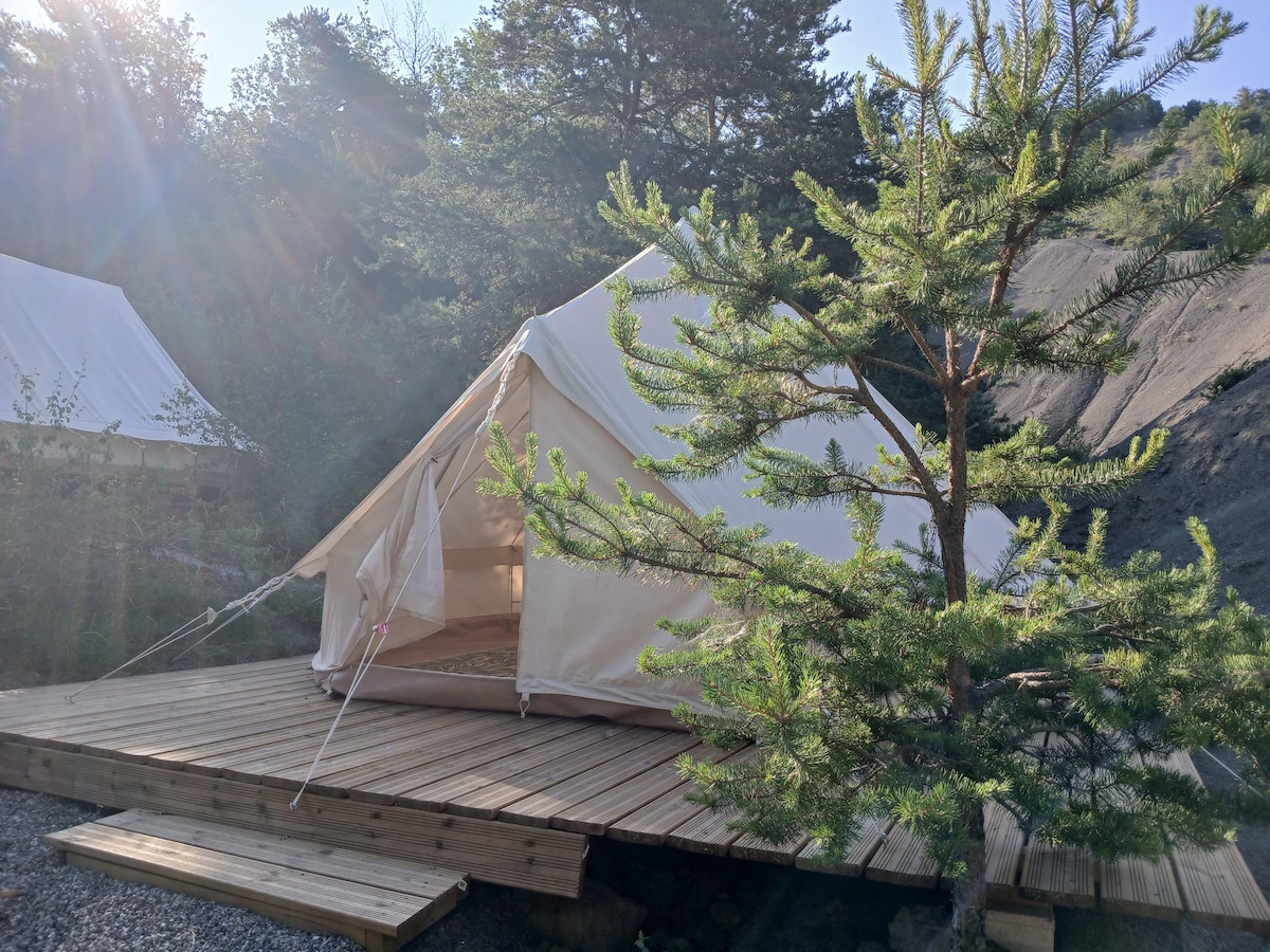 Camping en la naturaleza, en un valle protegido, a 400 metros de cualquier vivienda. Situado en el corazón de las Baronías provenzales a 4 km del pueblo de Orpierre. Dos tiendas de campaña cómodas (4 camas proporcionadas) de 16 m2 cada una. Sitio privado. Inodoros secos y ducha solar. Mesa de picnic, sala de estar y plataforma de observación de estrellas.