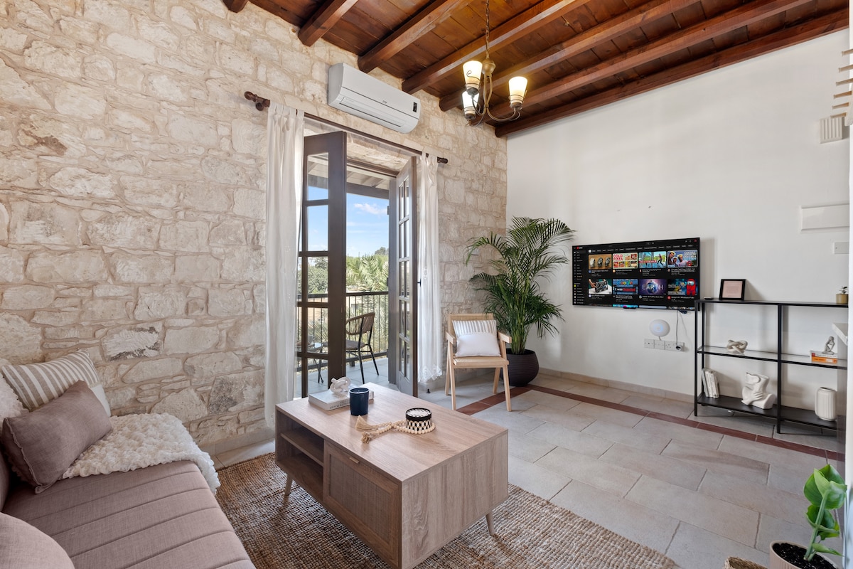 Ubicado en el centro de un tranquilo pueblo tradicional chipriota en el borde del Akamas con vistas ininterrumpidas para dejarte sin aliento. Disfruta desde la terraza de la azotea mientras te relajas en el jacuzzi. Una estancia en nuestro apartamento de casa de piedra recientemente renovado con encanto chipriota te permitirá experimentar la vida del pueblo y explorar la flora y fauna natural de Akamas. Un punto de partida perfecto para observar aves, andar en bicicleta y caminar. A solo 5 minutos en auto del puerto y las playas de Latchi.